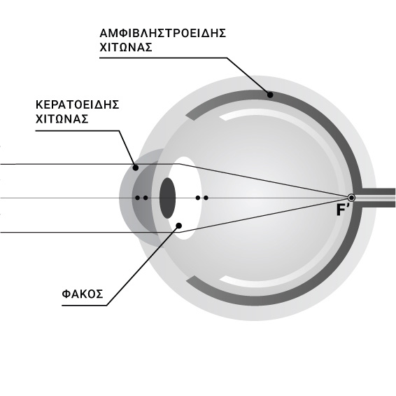 H λειτουργική όραση στον άνθρωπο προϋποθέτει το σχηματισμό ενός ευκρινούς ειδώλου στον αμφιβληστροειδή, τον φωτοευαίσθητο χιτώνα στο πίσω μέρος του οφθαλμού. Όπως κάθε οπτικό σύστημα (π.χ. φωτογραφική μηχανή) που «συγκεντρώνει» το φως, έτσι και ο ανθρώπινος οφθαλμός αποτελείται από διαθλαστικές (κυρτές) επιφάνειες, τον κερατοειδή και τον κρυσταλλοειδή φακό, που συγκλίνουν τις ακτίνες του φωτός και τις εστιάζουν στον αμφιβληστροειδή. Επιπλέον η ευκρινής όραση στους νεαρούς υπερμετρωπικούς οφθαλμούς εξασφαλίζεται για ένα μεγάλο εύρος αποστάσεων μέσω της διαδικασίας της προσαρμογής, δηλαδή της αύξησης της διαθλαστικής ισχύος του οφθαλμού με την αύξηση της καμπυλότητας του κρυσταλλοειδούς φακού.